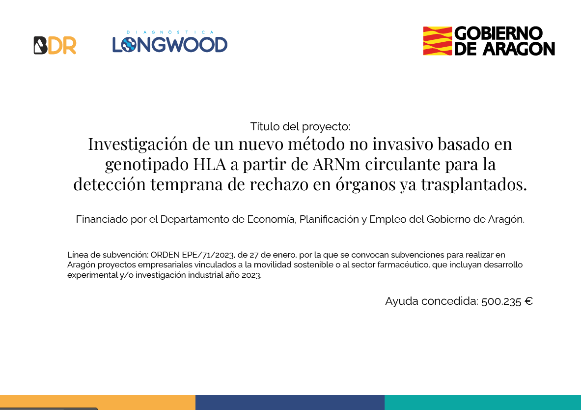BDR and Diagnóstica Longwood have been awarded a grant by the Department of Economy, Planning, and Employment of the Government of Aragon, under the aid program for industrial research and/or experimental development business projects.